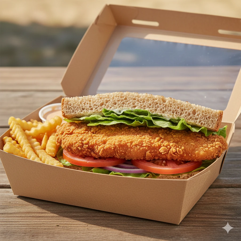 Sándwich de pollo crujiente o a la parrilla con ingredientes frescos.