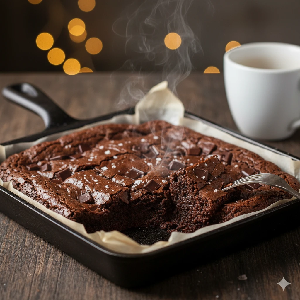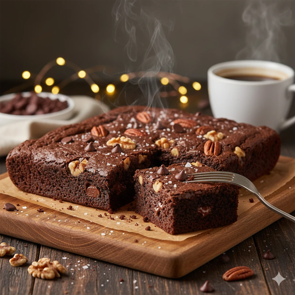 Brownie denso y suave con intenso sabor a chocolate.