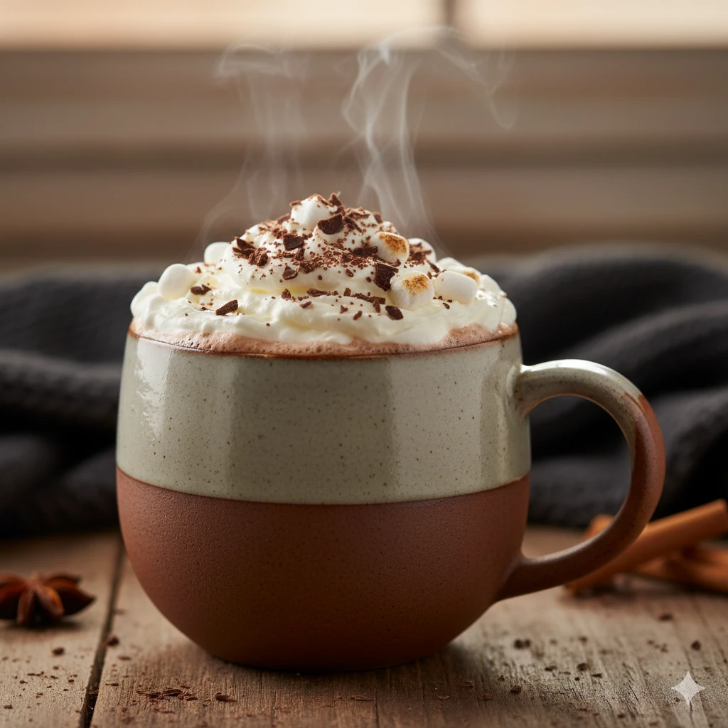 Chocolate caliente cremoso preparado con cacao de alta calidad.